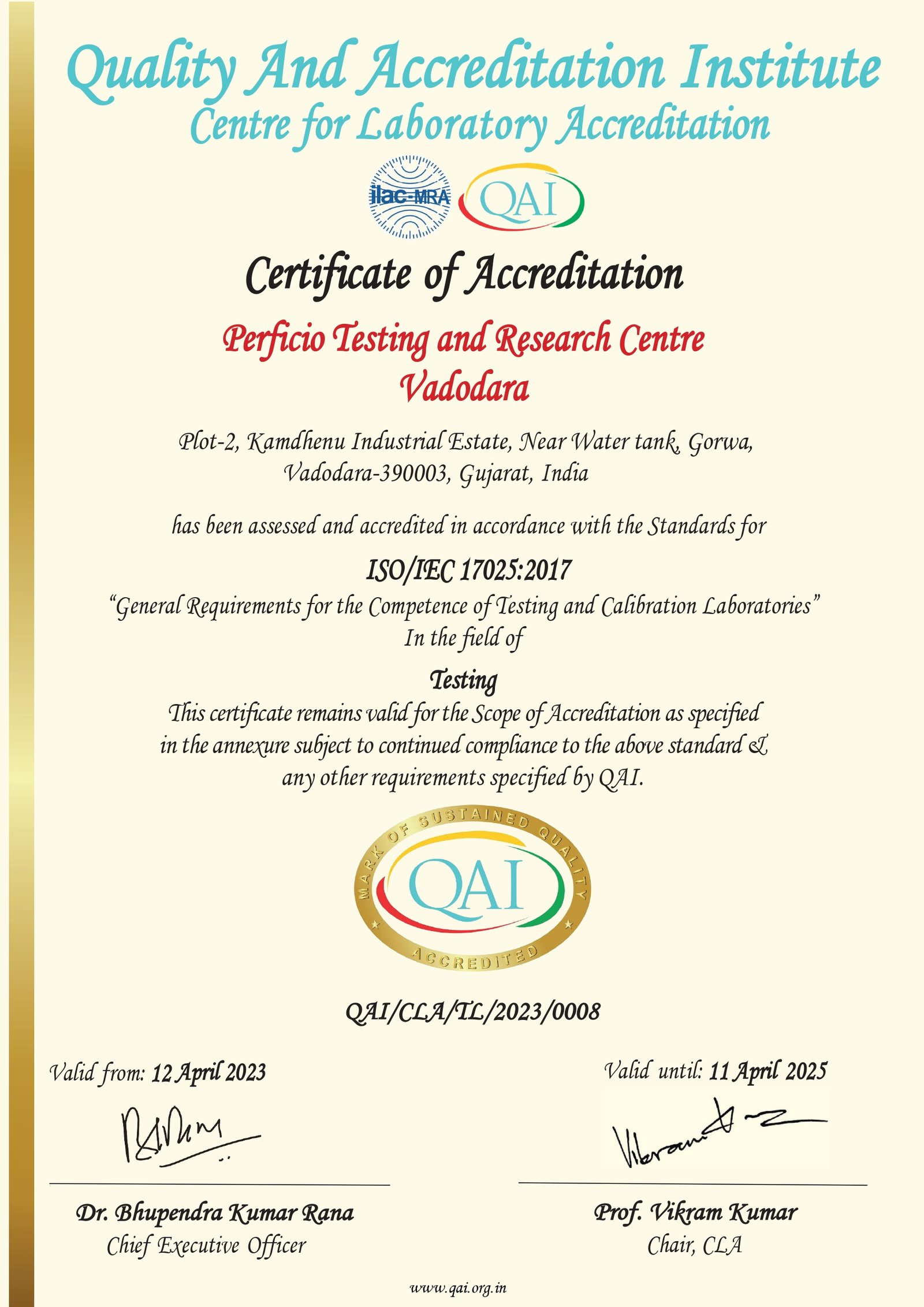 Iso iec 17025 Certificate